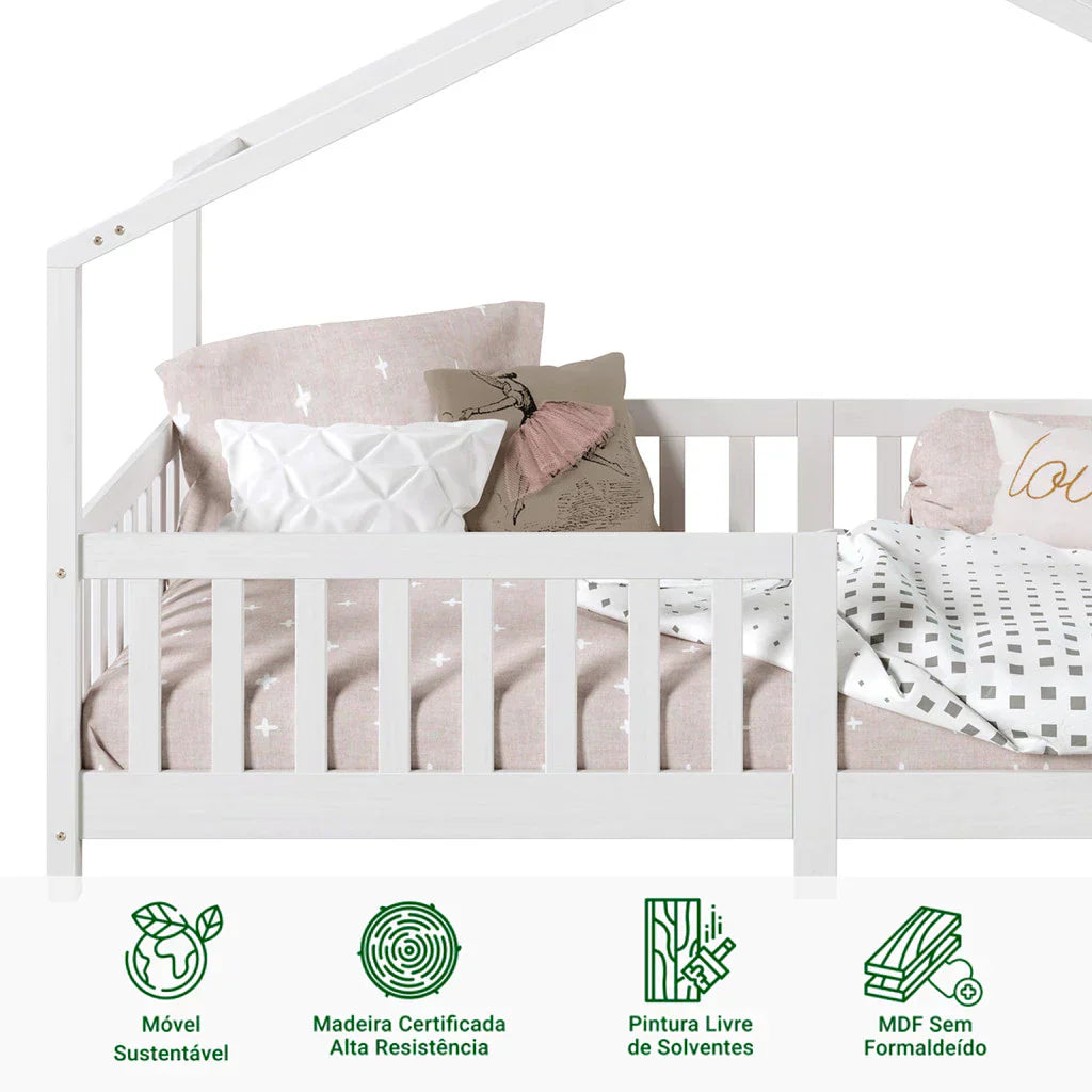 Grade de Proteção Ideal (32cm): Altura perfeita para evitar quedas, sem dar a sensação de "berço". A criança tem autonomia para entrar e sair, mas dorme protegida.